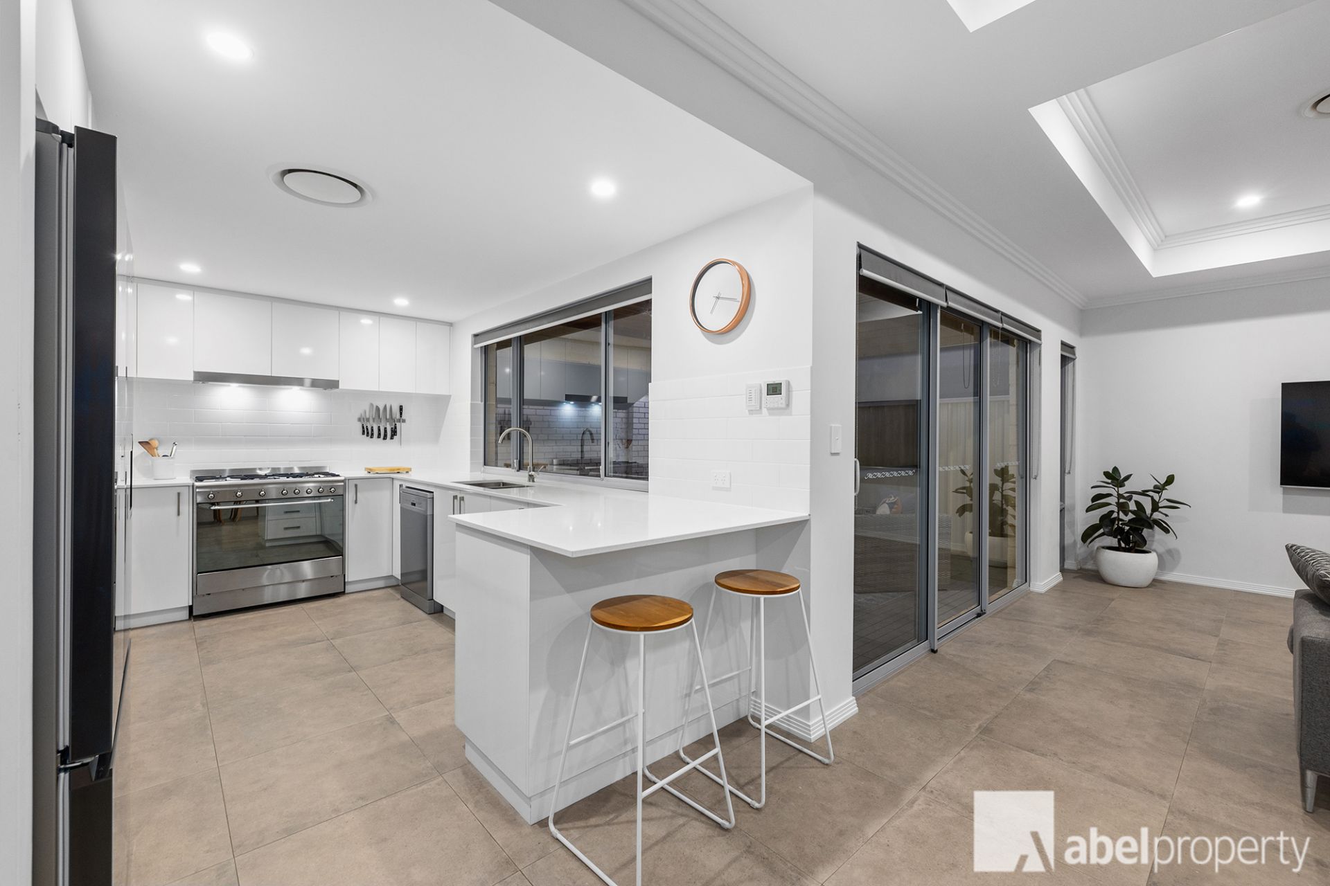 This home spares no expense and the attention to detail shines through with LED downlights, stainless steel lights outside with sensors, automatic reticulation for the lush green grass and landscaping, gleaming stone benchtops, custom garage doors, the cedar-lined alfresco, portico and eaves, with bonus double shower rails, Bosch instantaneous hot water and an alarm system for added security.