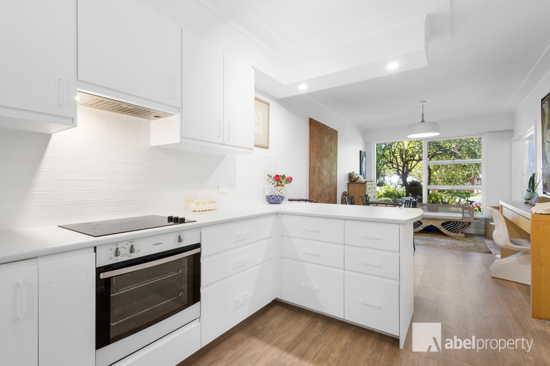 * Wonderful, contemporary, white Kitchen that is minimalist inspired, tasteful and understated. Well appointed, ample bench space, breakfast bar; cabinets under bench and overhead; feature tiled splash backs; quality tapware, additional lighting. 600 ml electric cooktop and oven; concealed rangehood. Pantry with fit out; Integrated dishwasher.