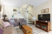 Step inside to discover a bright and airy living space, featuring updated flooring and fresh paint throughout. The open-plan layout seamlessly connects the living area to a contemporary kitchen, equipped with ample storage, ideal for both cooking and entertaining.