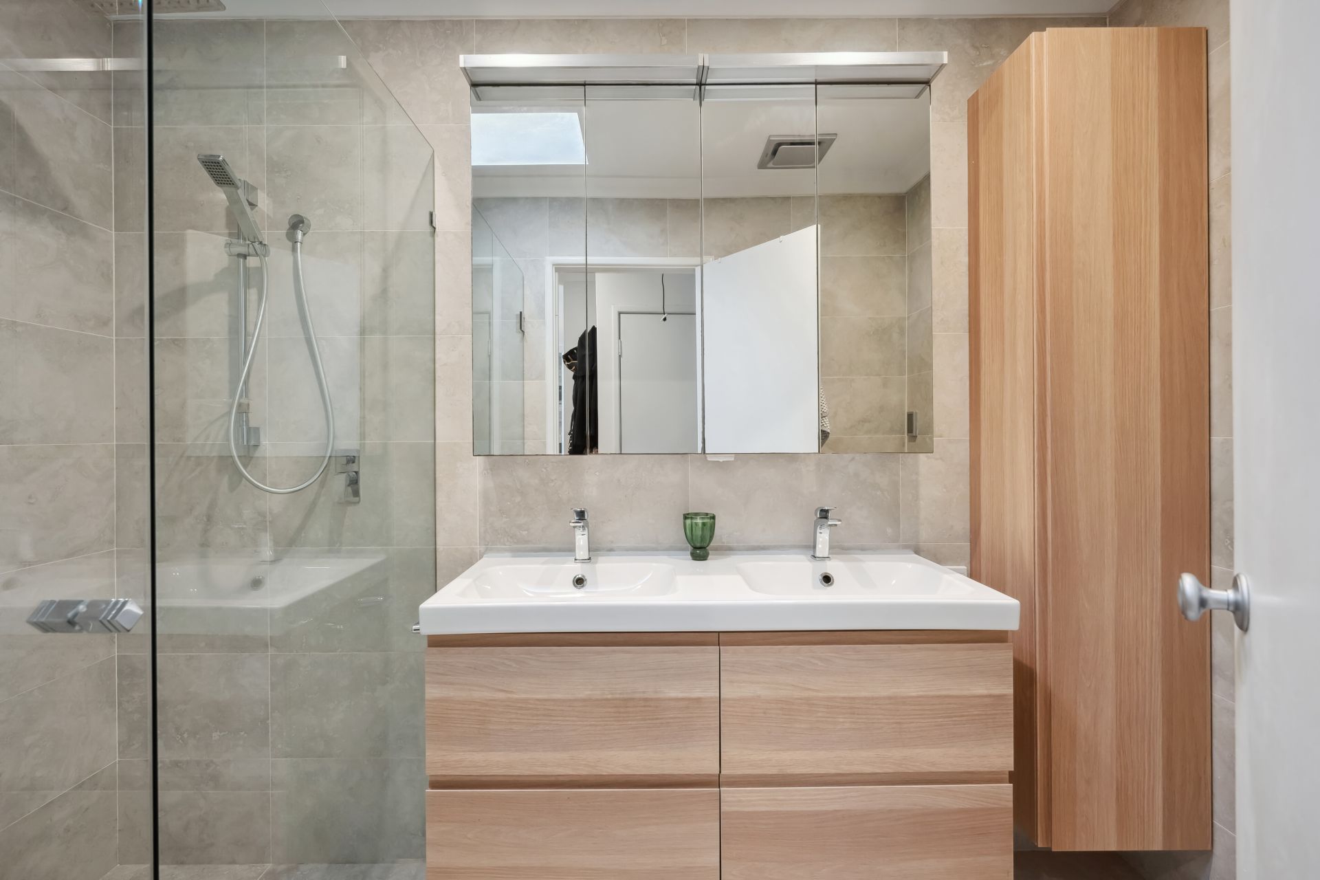 Set in a small, tightly held complex, this transformed two bedroom villa has an impressive open kitchen/dining/living room. The kitchen features glistening acrylic benches, Miele appliances and a central Schweigen rangehood suspended over an expansive island bench. Spacious open dining and living areas boast white plantation shutters, split system air conditioning and seamlessly link to the kitchen space. The master and second bedroom have built in robes and plantation window shutters. The bathroom is simply exquisite, with twin vanities and luxurious heated underflooring and the home has stunning bamboo flooring throughout. Internally there is also extra storage in the roof cavity with pull down ladder access.