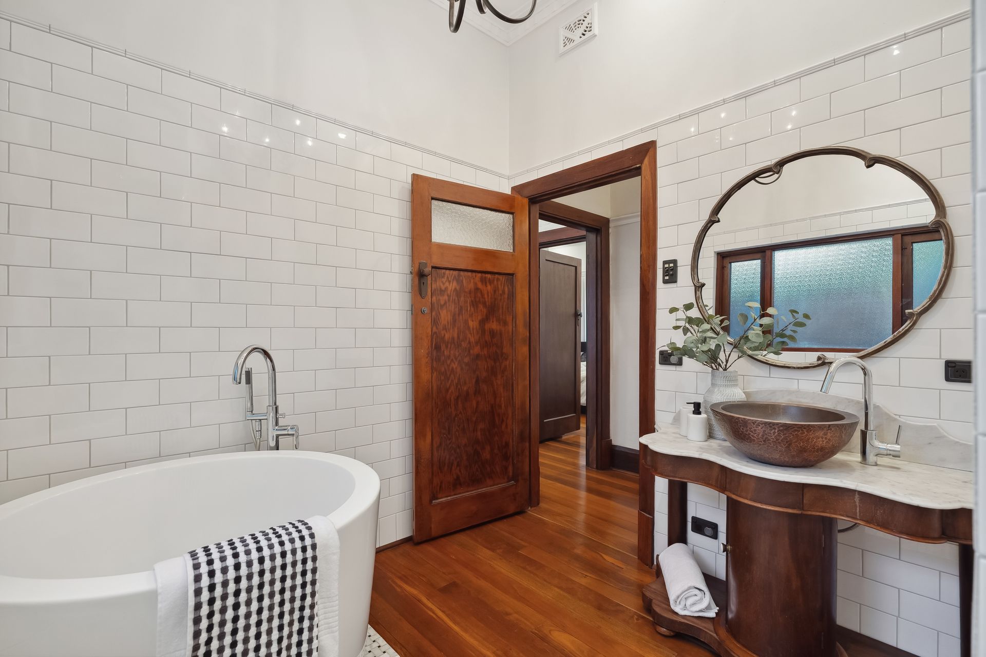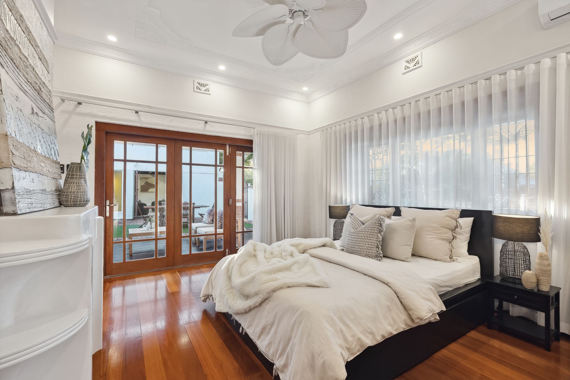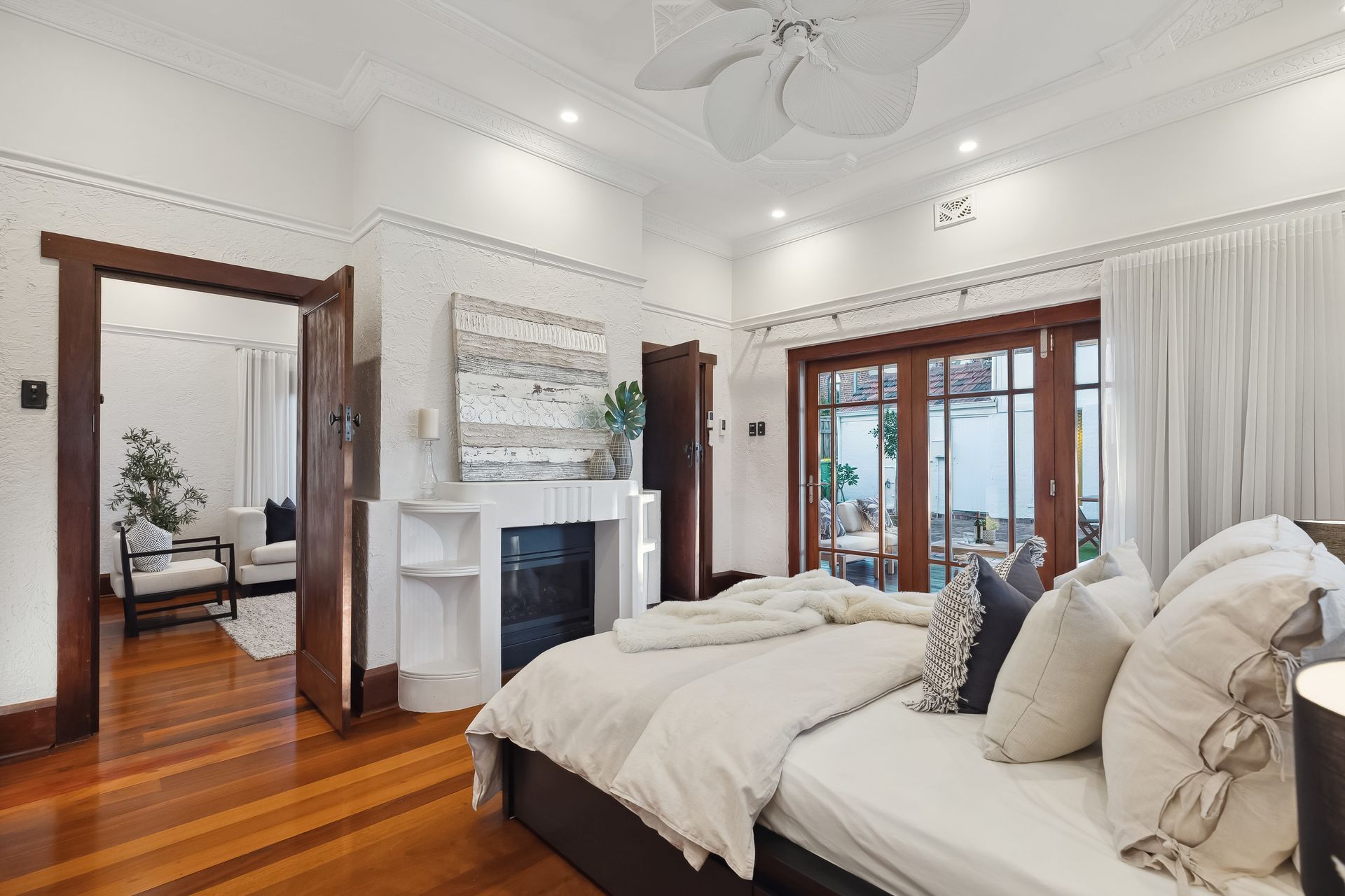 Entering the home, you're immediately welcomed by the warmth of polished original jarrah floors, soaring decorative ceilings, and ornate mouldings that speak to the home's rich architectural heritage. These irreplaceable features have been lovingly preserved and seamlessly paired with high-end, modern renovations for effortless everyday living.