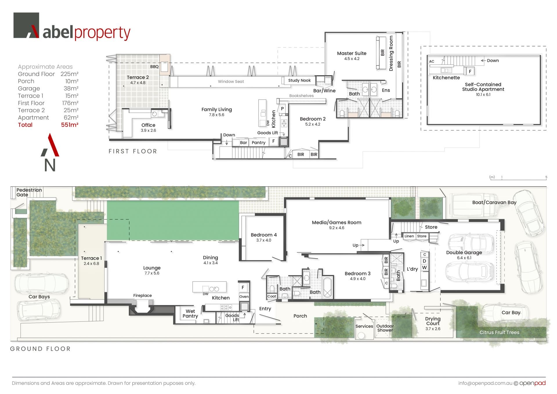 • x2 Spacious master-bedroom suites and separate studio