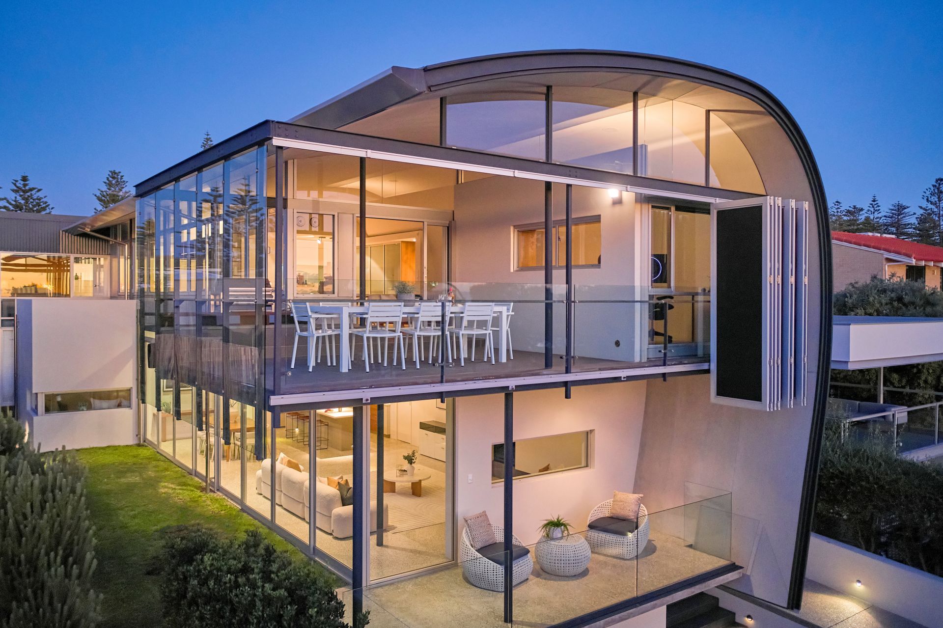 Purposefully north-facing to harness winter sun and shield from summer heat, this unique abode is as intelligent as it is inspiring. Vaulted, cantilevered and wrapped in a steel skin that functions as both sculpture and solar buffer, it's a masterclass in light, shade and coastal nuance.