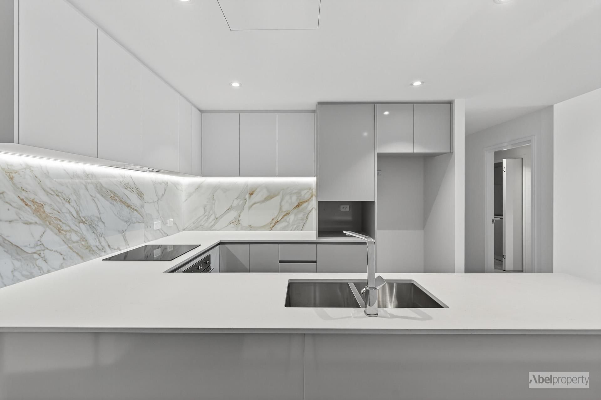 Modern chef’s kitchen with stone benchtops, high-end appliances & ample storage