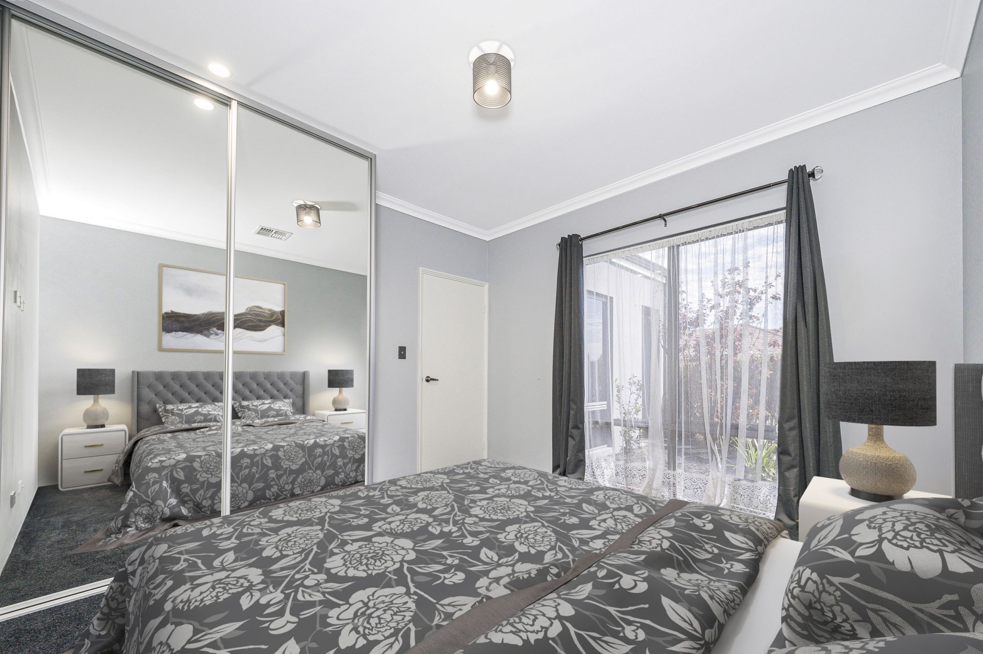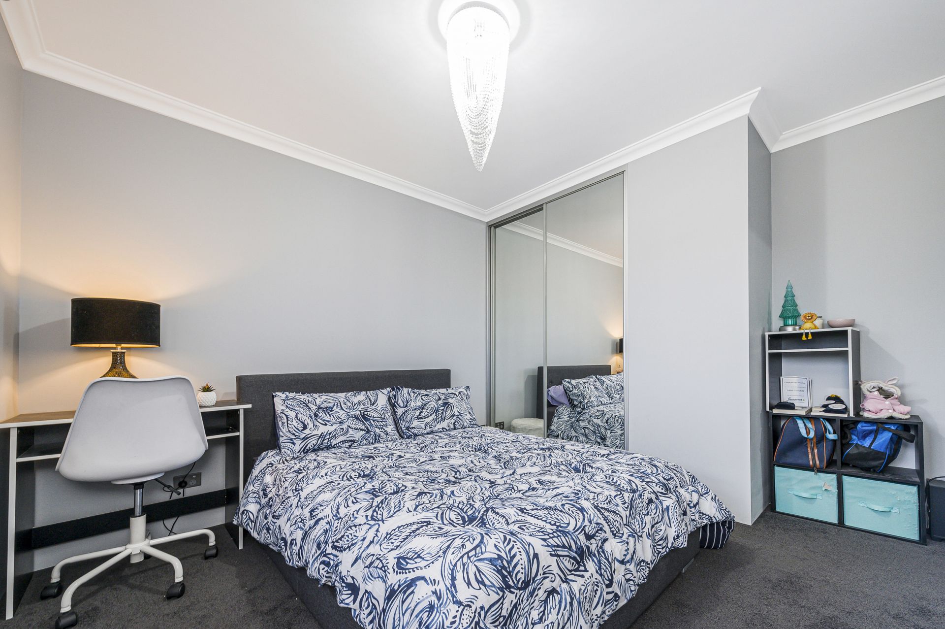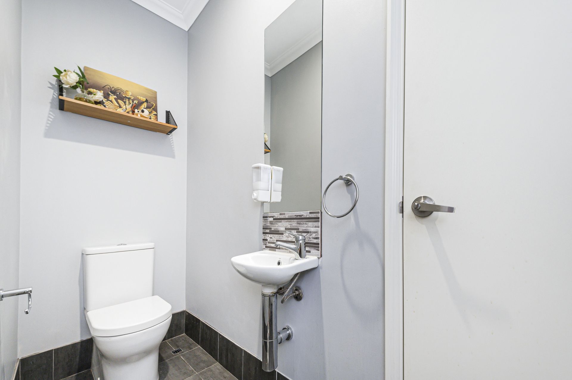 the king-size master suite features double mirrored sliding robes, a walk-in robe, and a luxurious ensuite bathroom with a large shower and vanity. A second bedrooms is queen-size with mirrored sliding robe doors, ideal for guests or multi-generational living, plus a powder room for convenience.