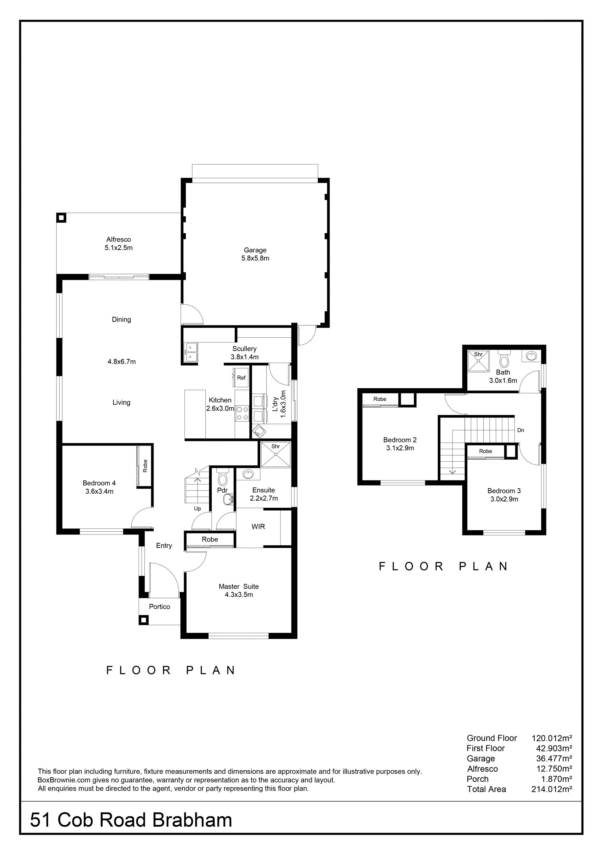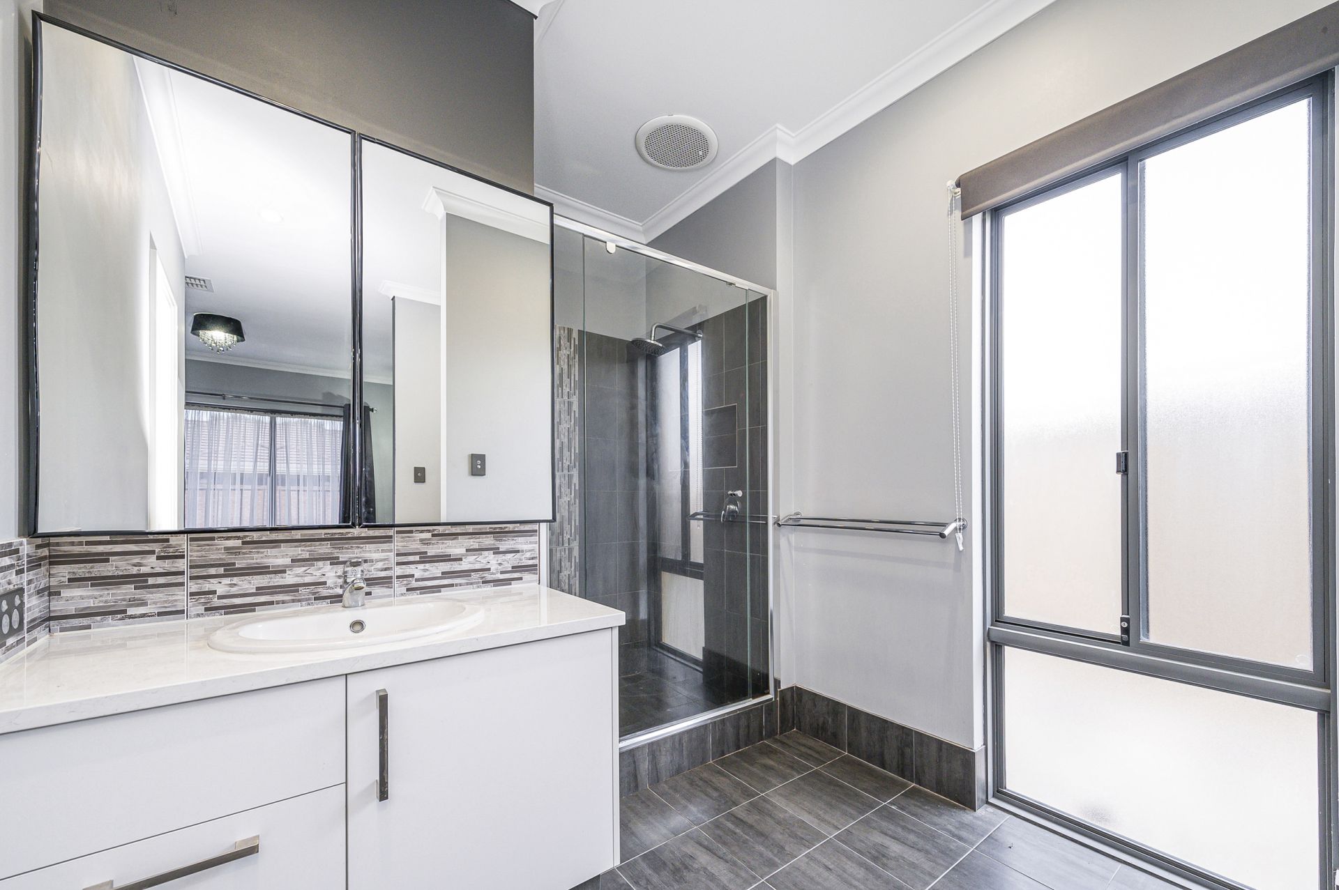 Upstairs, Two additional queen-size bedrooms with mirrored robes are serviced by a spacious family bathroom with shower, vanity, and toilet.