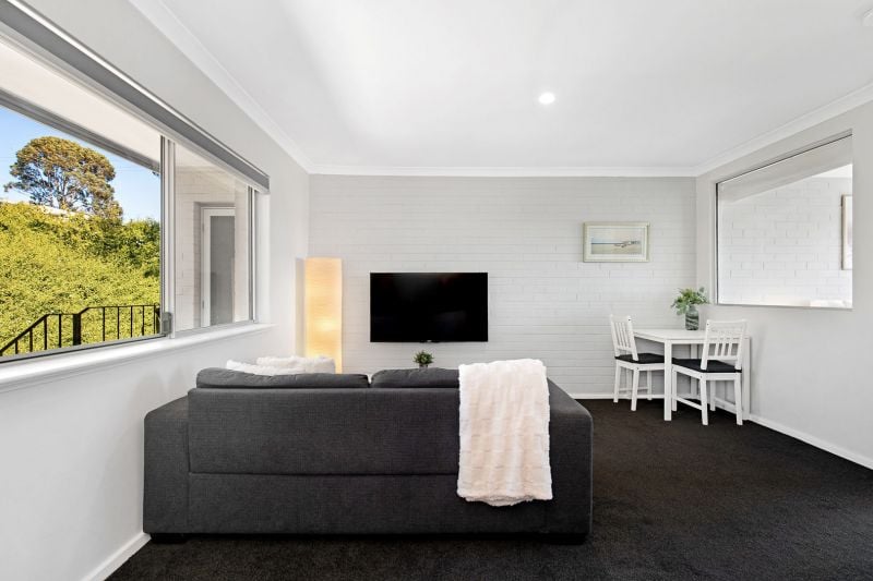 Light-filled and low-maintenance, the property features an open-plan living and dining area with split-system air-conditioning, soft carpeting, and access to a private balcony capturing lovely inland views. The tiled kitchen includes stainless-steel appliances and ample storage, while the generous bedroom features mirrored built-in robes and direct balcony access.