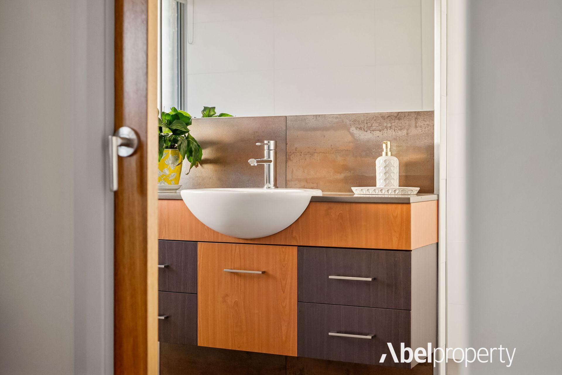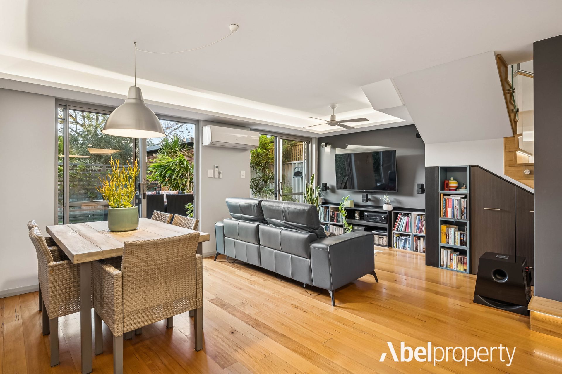 The open plan Kitchen/Living/Dining is a feel-good space and spills to the inviting decked entertaining. A remote, retractable awning ensures you can relax outside or entertain family and friends in any season. Lawn areas and landscaped gardens complete the picture. A pedestrian walkway (included in your Title) leads to Barker Road and the vibrant Rokeby Road precinct.