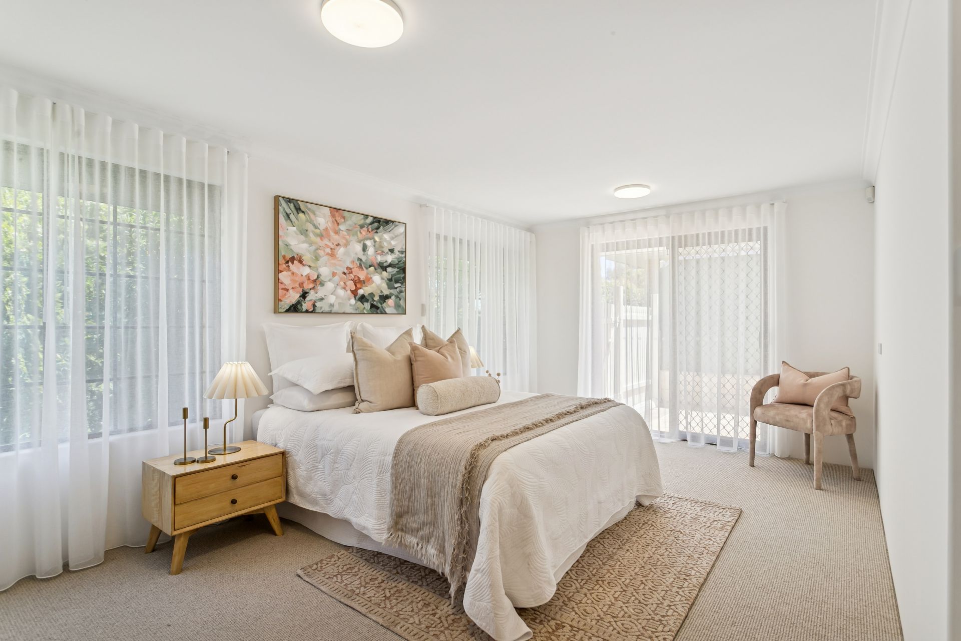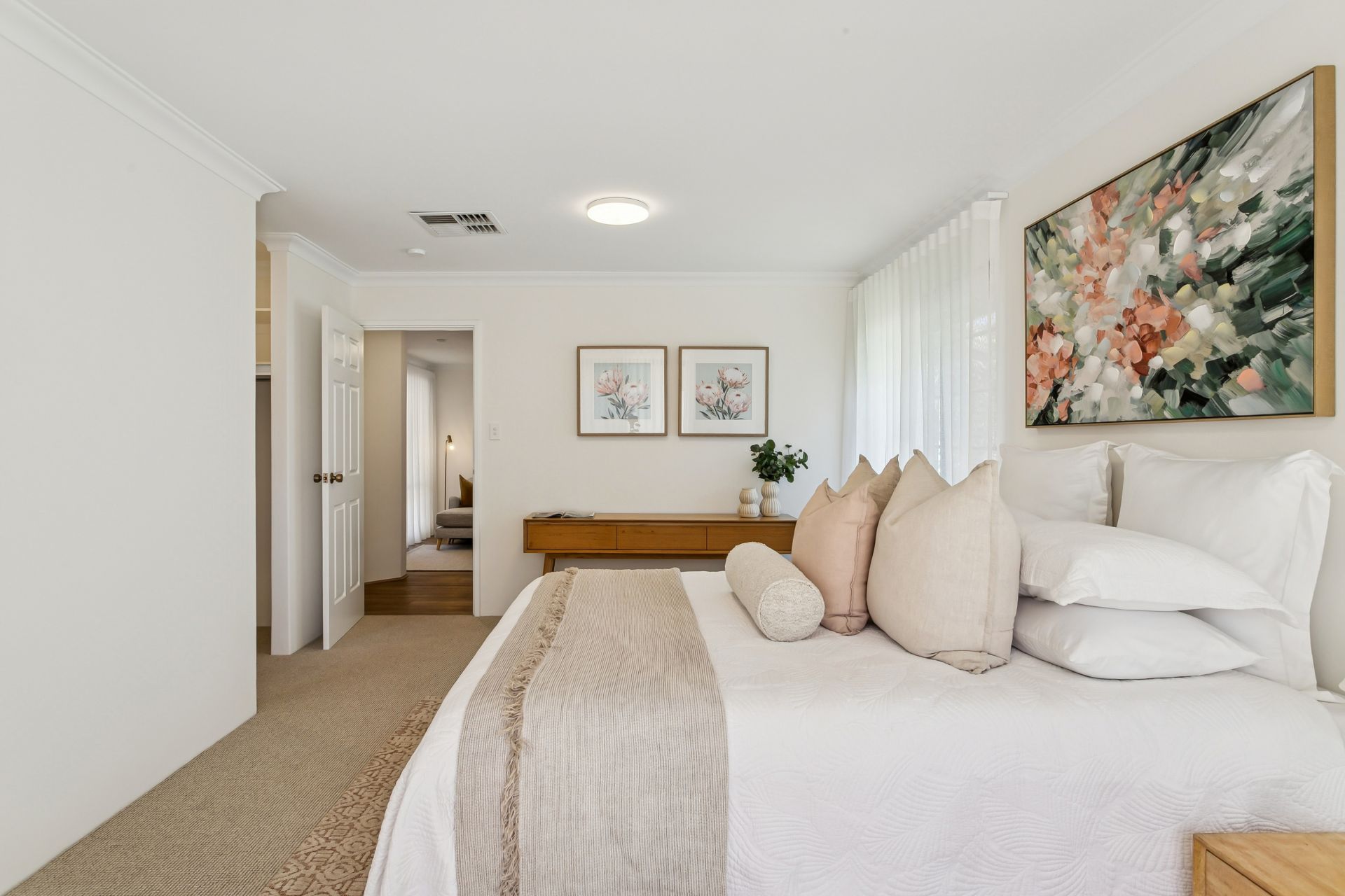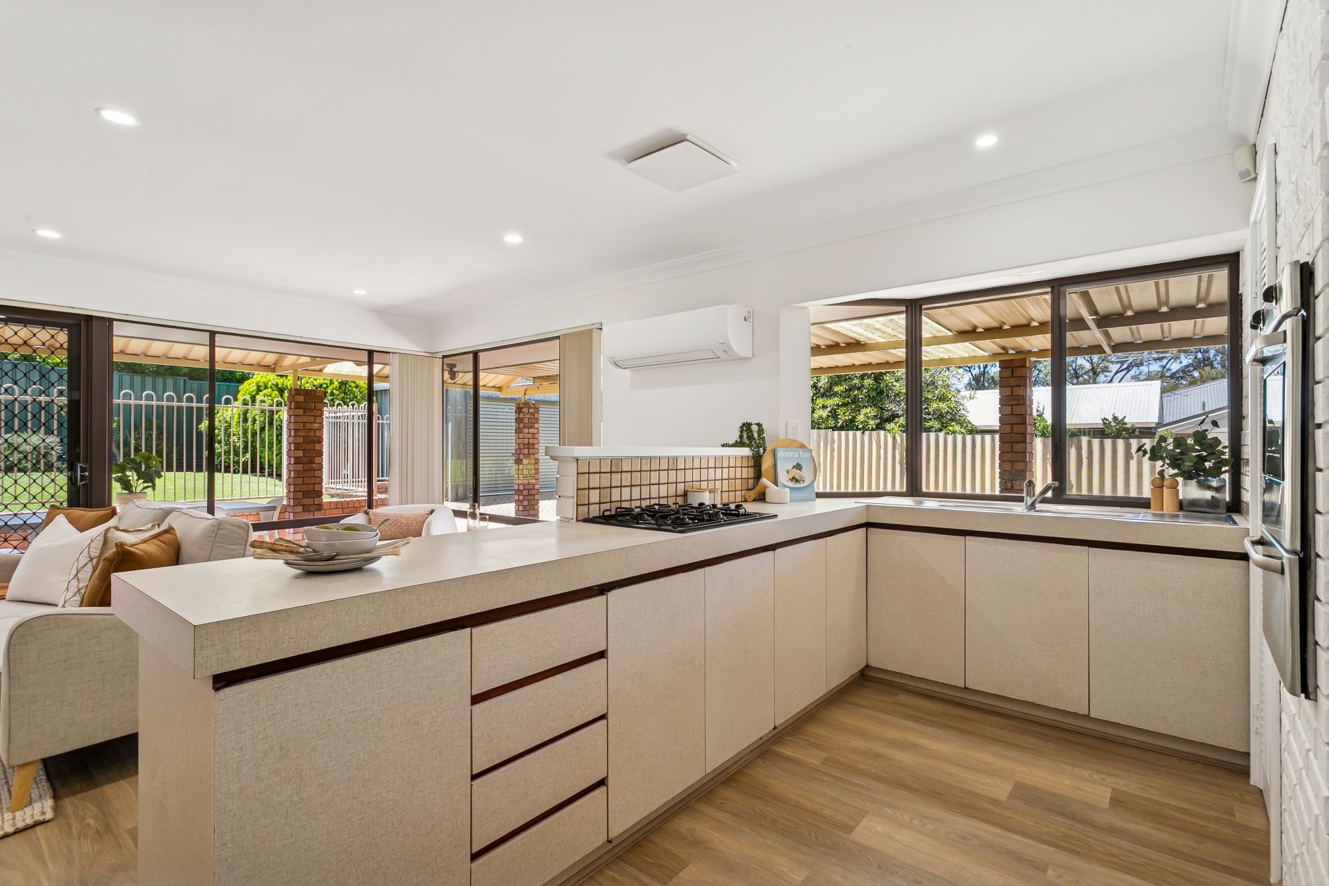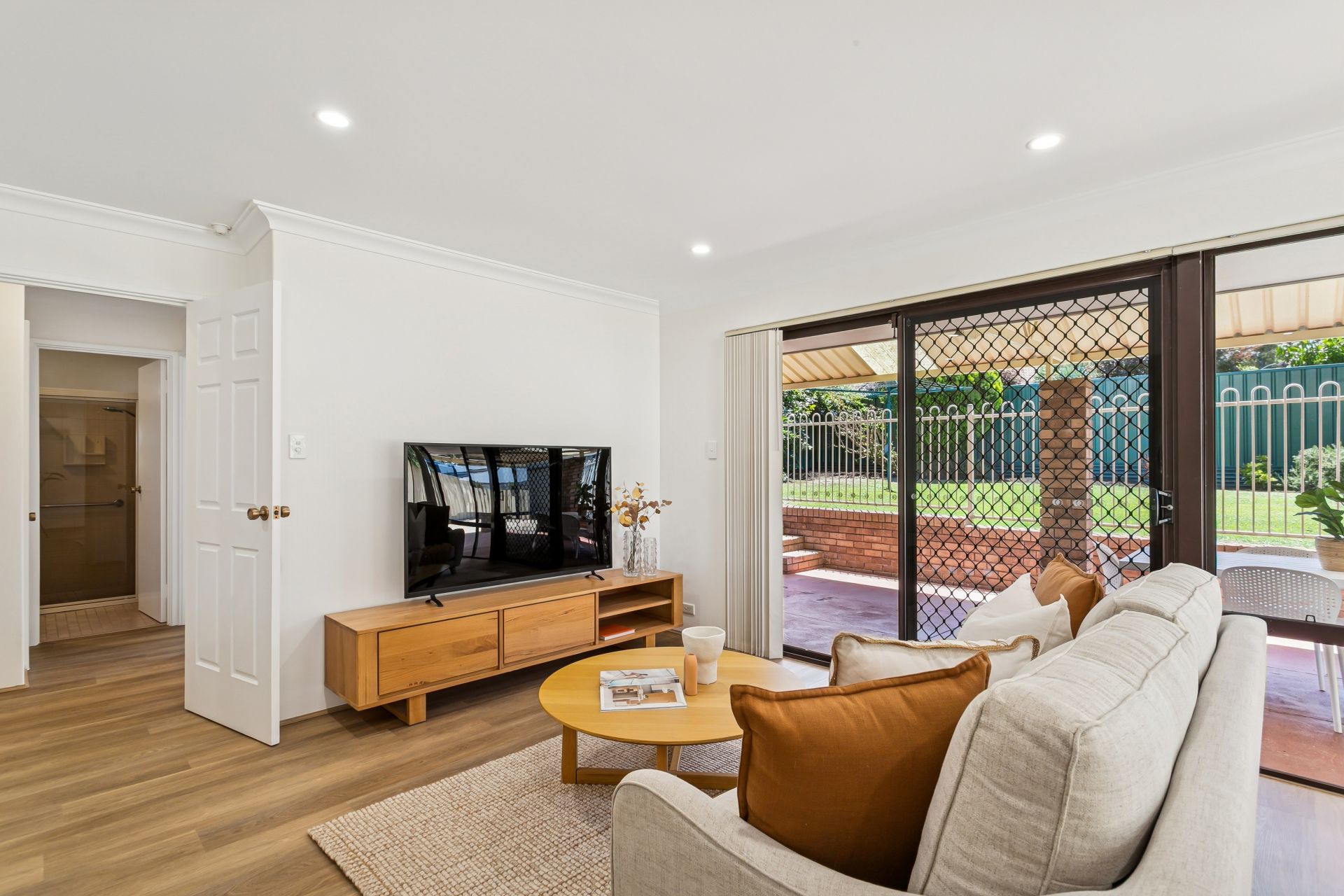 Freshly painted walls and ceilings create a magnificent sense of space. The living areas feature new hybrid timber look flooring, and the bedrooms boast newly laid carpets. New roller blinds and sheer curtains add to a super crisp feel and there are auto roller shutters fitted to the front living area and master bedroom windows. Other features include an alarm system, ducted evaporative air conditioning and a split system air conditioner to the main living area.