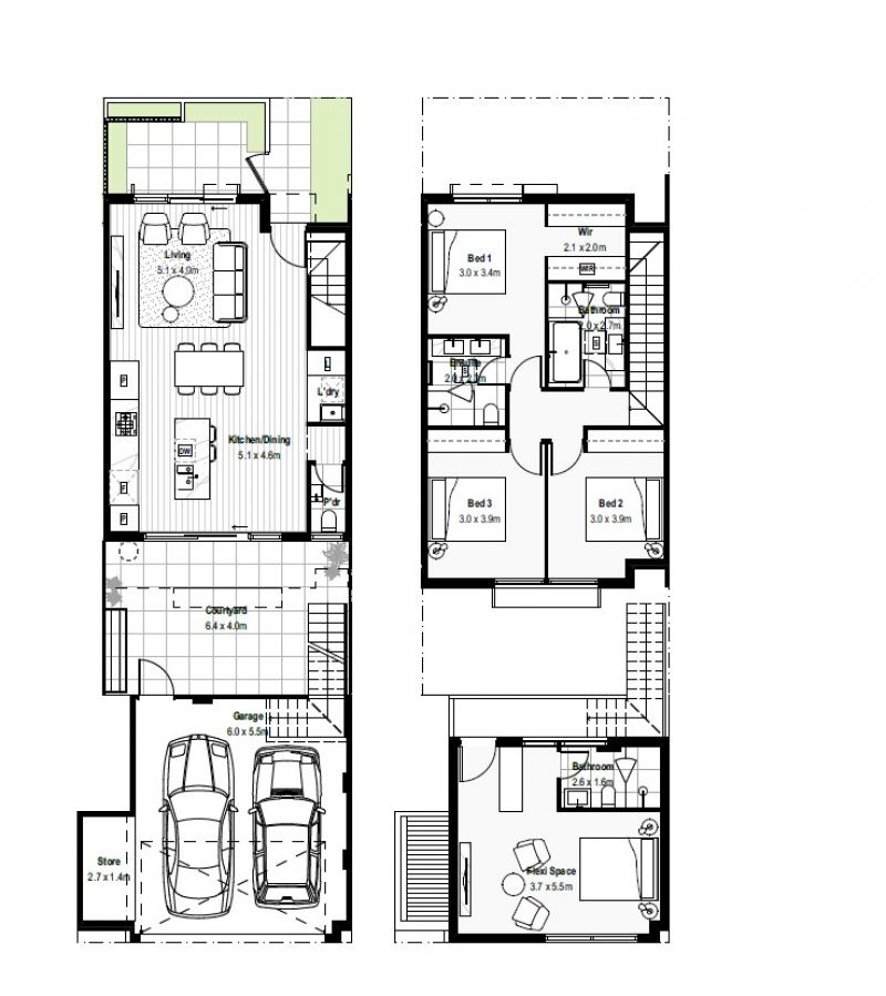 The main residence features an open-plan living zone on the ground floor that connects easily between the kitchen, dining, and lounge areas. Natural light filters through the space, and the private courtyard gives you a low-maintenance outdoor spot for everyday use.