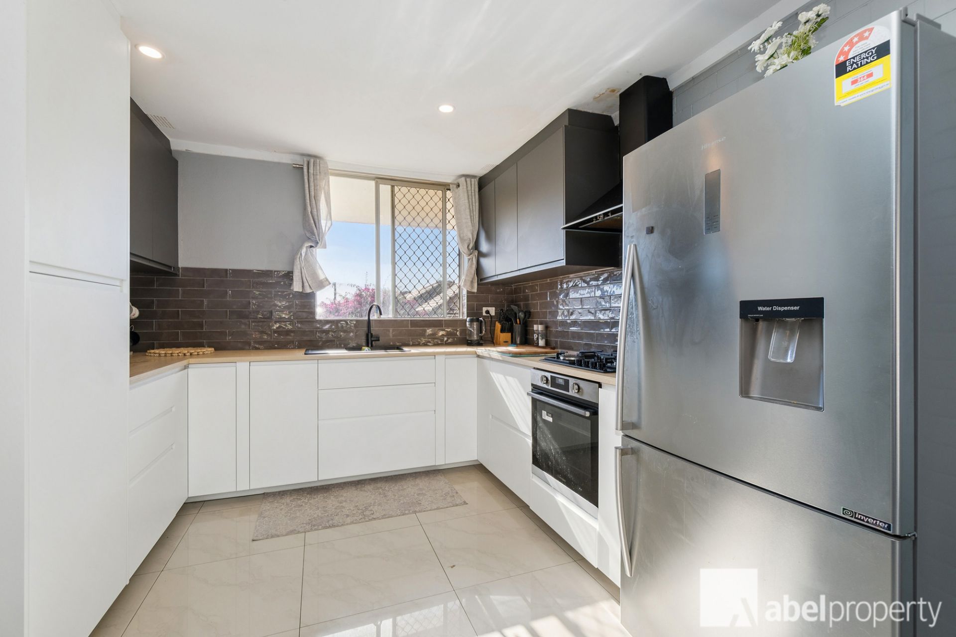 * Expansive tiled flooring for easy living