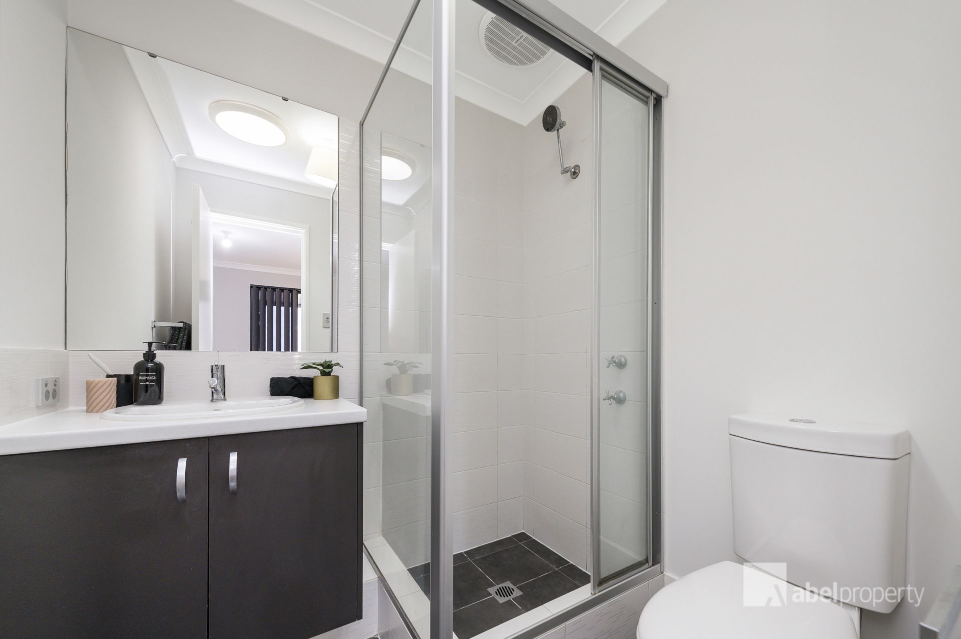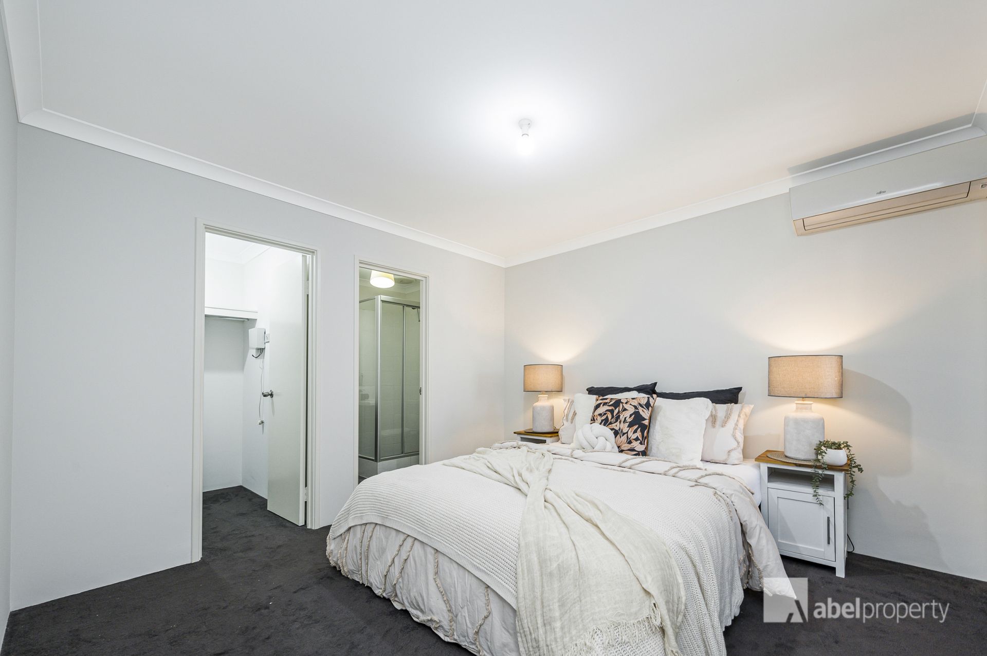 Master bedroom with walk-in robe and private ensuite with skylight, shower, vanity and toilet. Both minor bedrooms are good-sized with mirrored built-in robes. Family bathroom with shower, vanity, bath and skylight, plus a separate toilet.