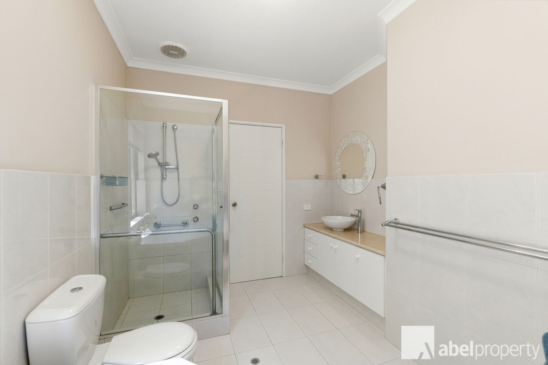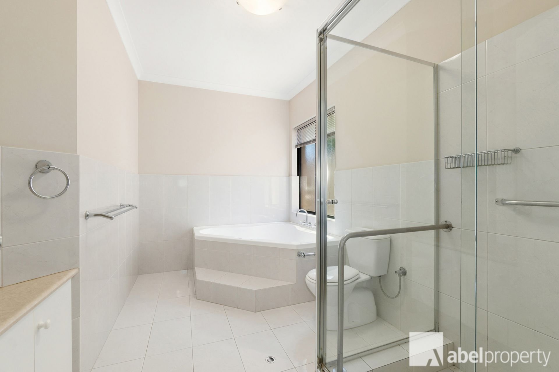 Master bedroom has split-system air-conditioning, a walk-in robe and a large ensuite with a corner spa, shower and toilet. 2nd and 3rd bedrooms both have built in robes. Family bathroom with separate bath and shower. Large, modern kitchen with sparkling stone benchtops and splashbacks. New 5 burner gas cook-top and electric oven. Plenty of cupboard space. Air conditioning in master and living areas.