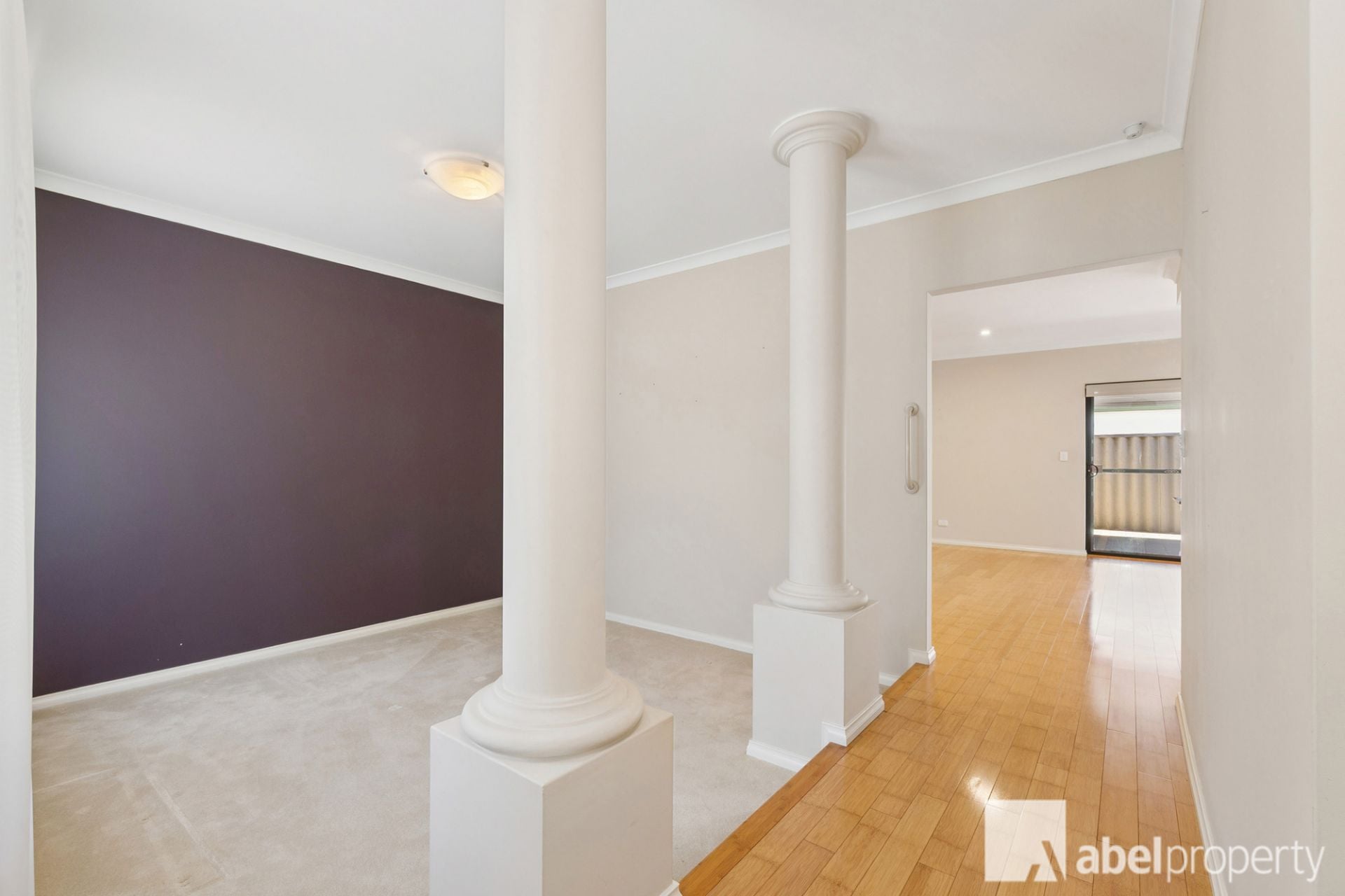 Sunken lounge with charming pillars, at the front. Spacious, open plan kitchen, dining and family room is in the heart of the home, and opens to covered outdoor entertaining area, complete with manual, roll-down privacy weather blinds. Remote-controlled double garage with shopper's entry, rear access and store room.