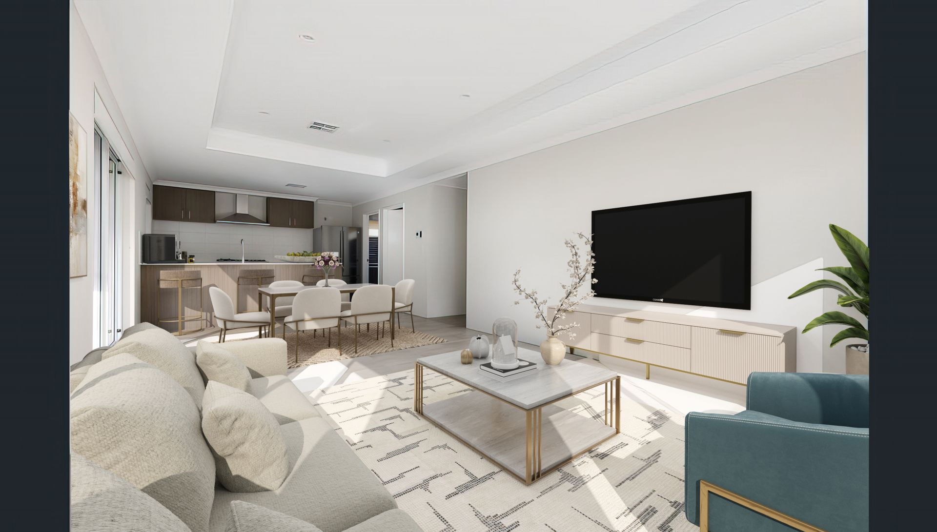 The central open plan kitchen, living and dining is big, with the entertainer's kitchen boasting a large pantry with lots of storage and a preparation space, gas cooking and dishwasher.