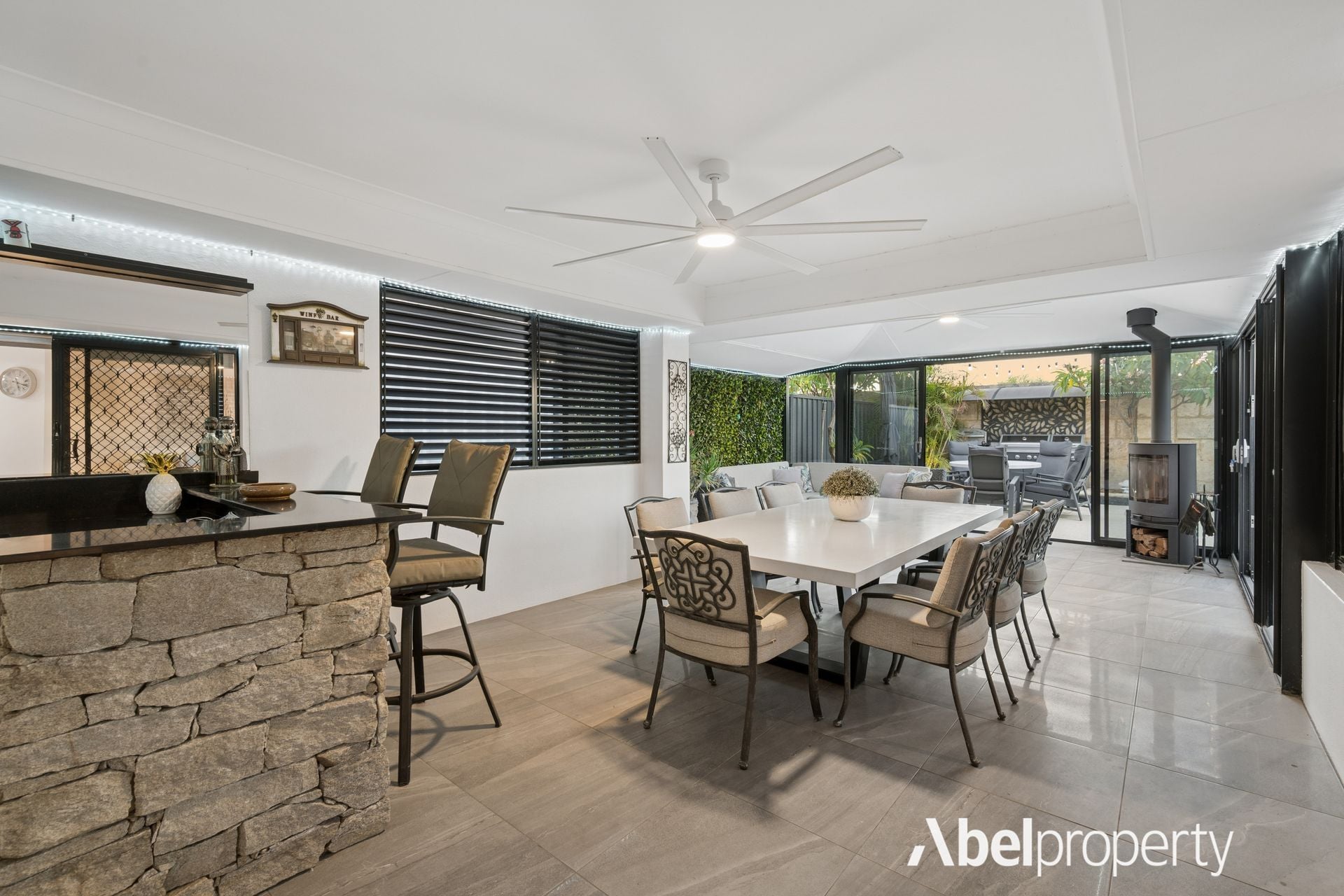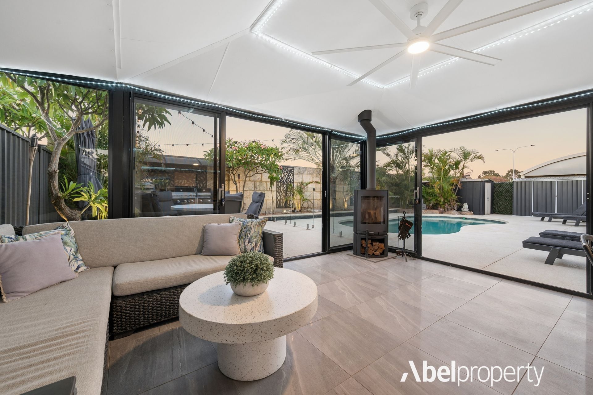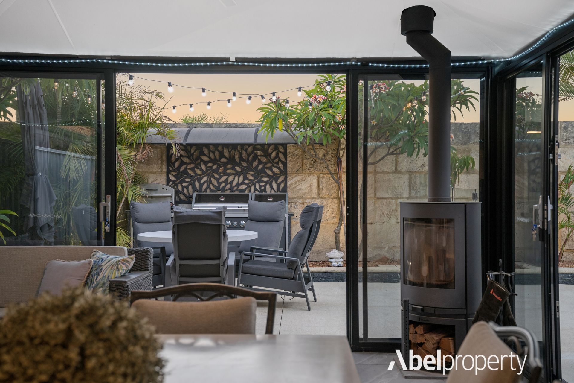 The alfresco area is a true highlight. Featuring a wood log fire and fully enclosed with glass sliding doors, this space transforms into an additional living area that can be enjoyed all year round.