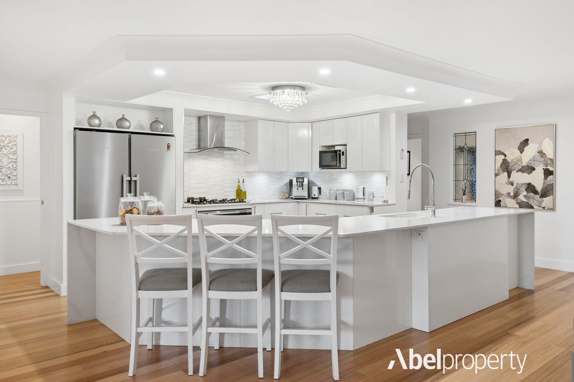 Every detail has been thoughtfully updated with high-end finishes throughout. At the heart of the home, the stunning kitchen is equipped with: