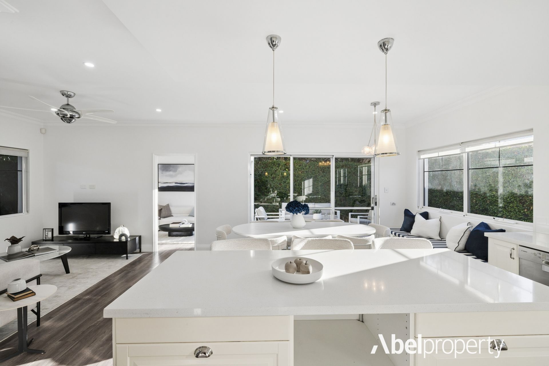 Upstairs, three generous bedrooms offer peaceful treetop outlooks and plenty of space for growing families, serviced by a well-appointed family bathroom.